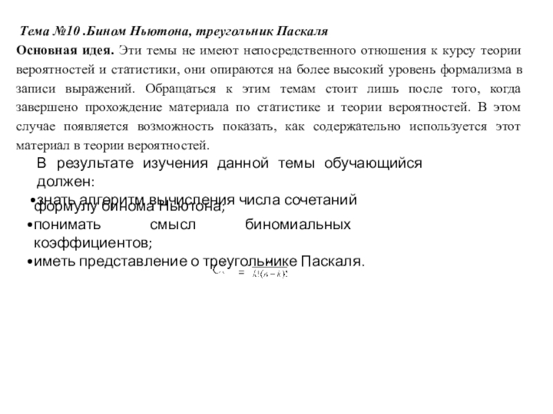 Слайд 9 Тема №10 .Бином Ньютона, треугольник Паскаля