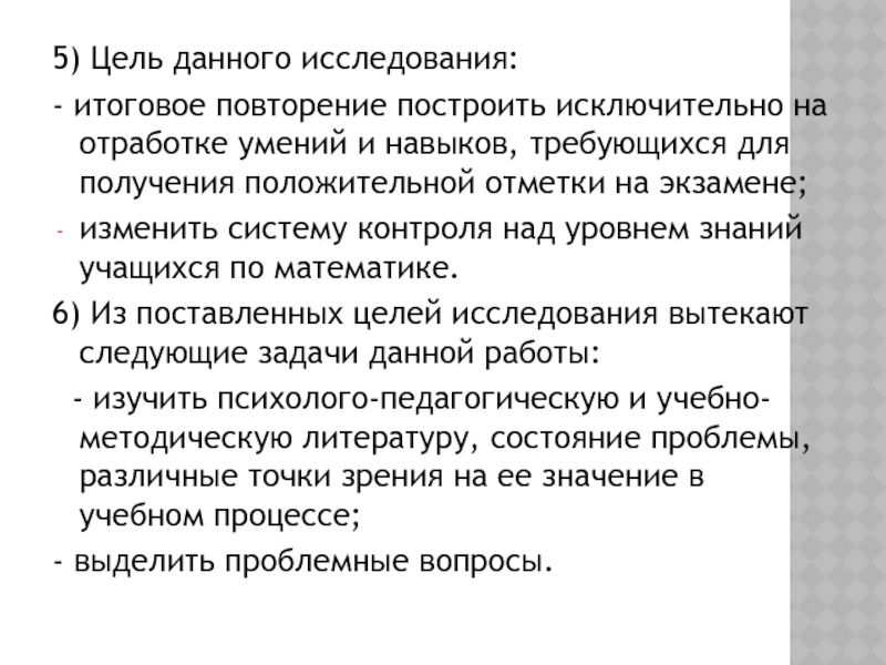 6) Из поставленных целей исследования вытекают следующие задачи данной работы:
