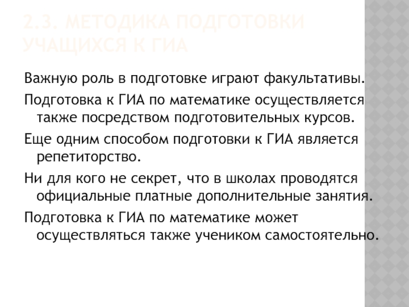 Слайд 122.3. Методика подготовки учащихся к ГИА