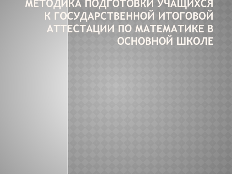 Методика подготовки учащихся к государственной итоговой аттестации по математике в основной