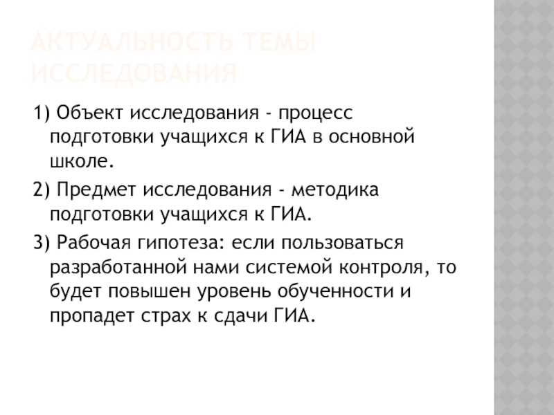 2) Предмет исследования - методика подготовки учащихся к ГИА.