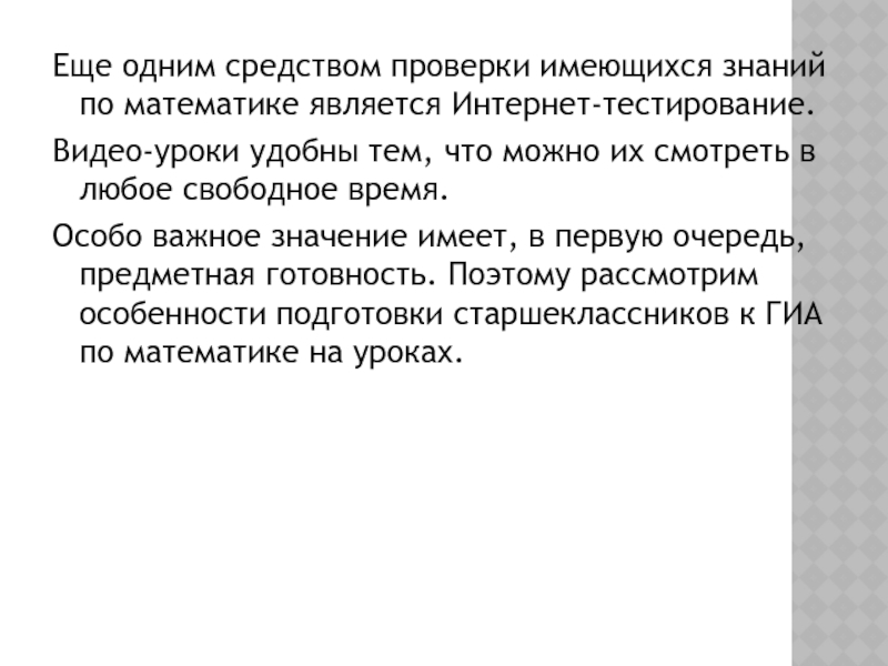 Слайд 13Еще одним средством проверки имеющихся знаний по математике является Интернет-тестирование.