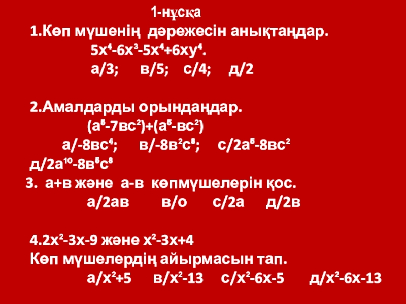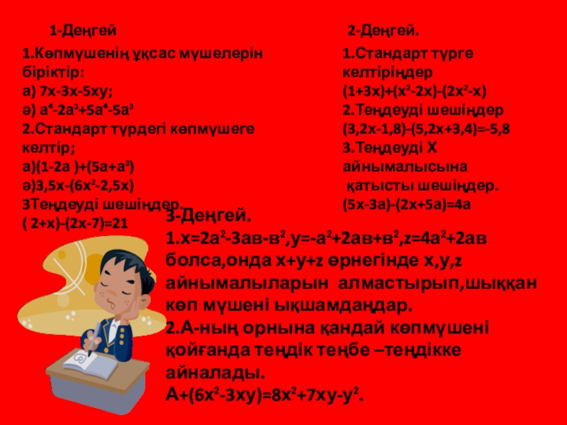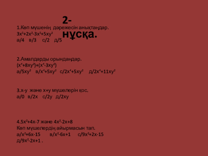 2.А-ның орнына қандай көпмүшені қойғанда теңдік теңбе –теңдікке айналады.