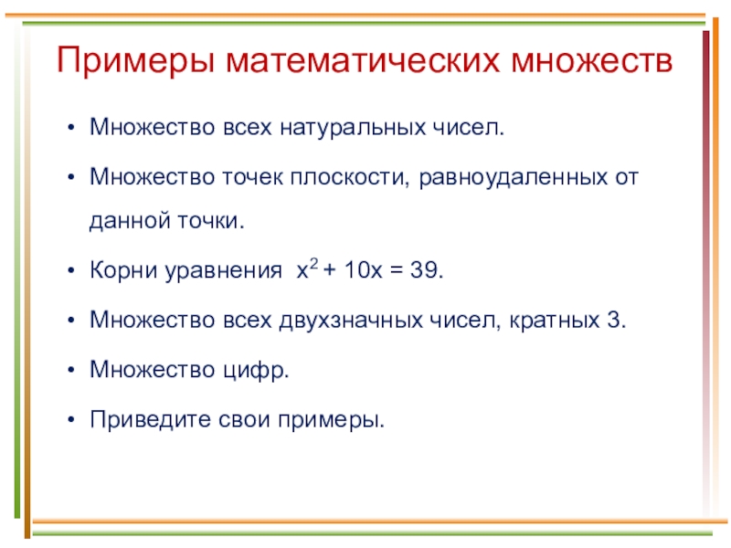 Множество ЧЁТНЫХ чисел: свойство, которым обладает каждый элемент данного множества, - «ДЕЛИТСЯ НА 2».
