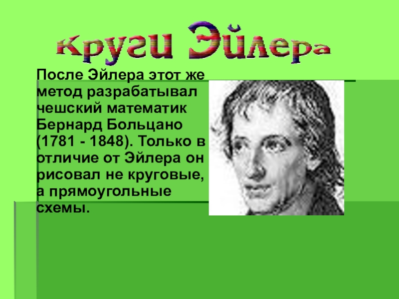 Слайд 27После Эйлера этот же метод разрабатывал чешский математик Бернард Больцано (1781