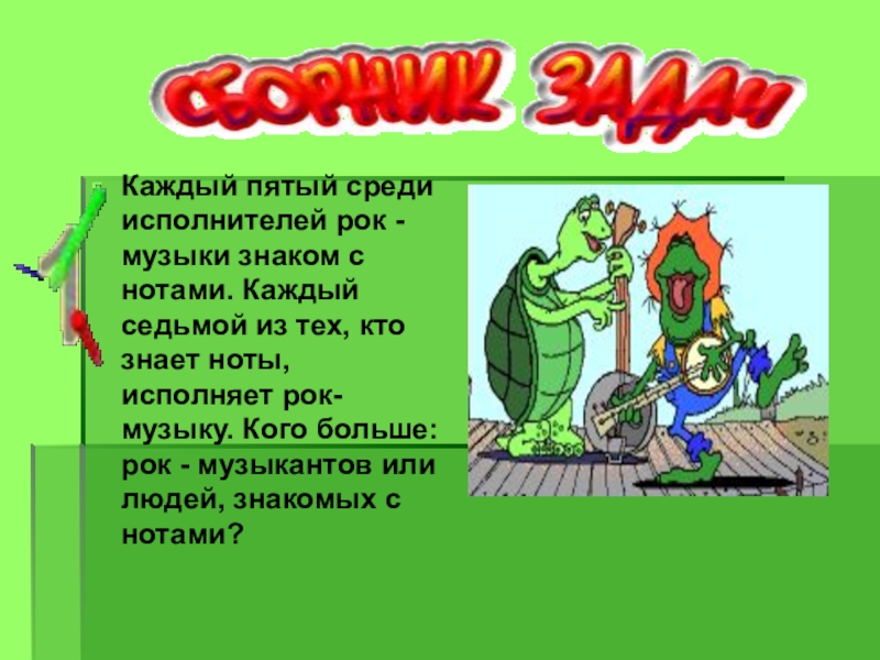 Слайд 40Каждый пятый среди исполнителей рок - музыки знаком с нотами. Каждый