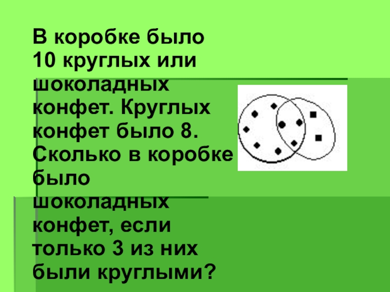Слайд 33В коробке было 10 круглых или шоколадных конфет. Круглых конфет было