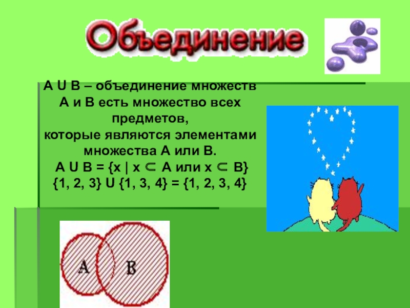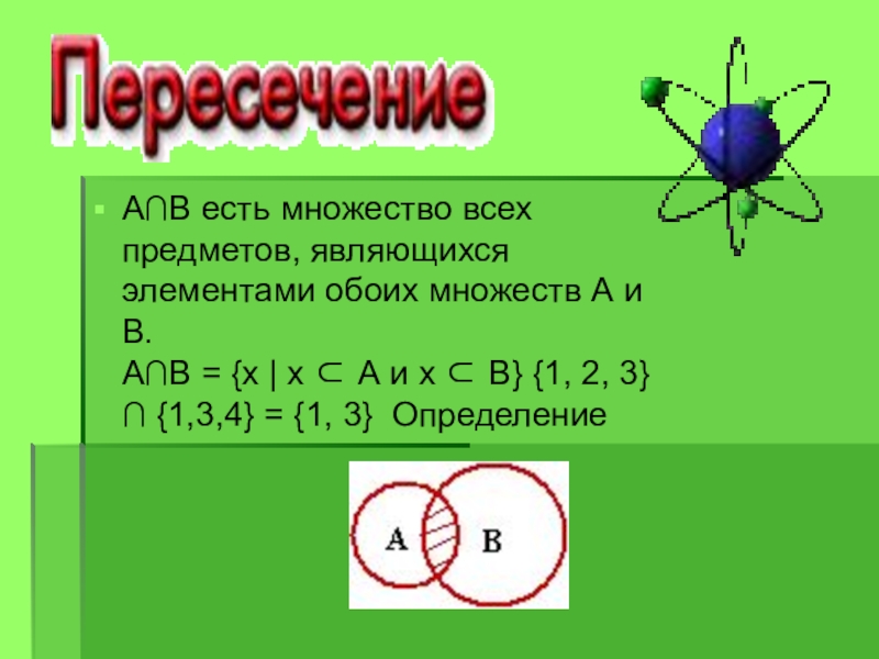 Слайд 37А∩В есть множество всех предметов, являющихся элементами обоих множеств А и