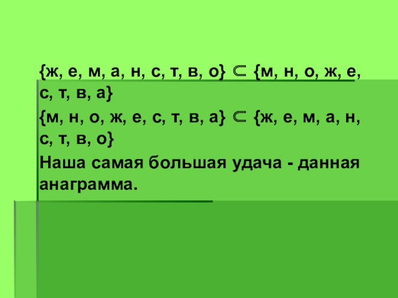 Слайд 21{ж, е, м, а, н, с, т, в, о} {м,