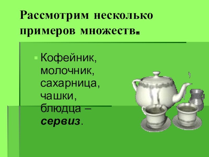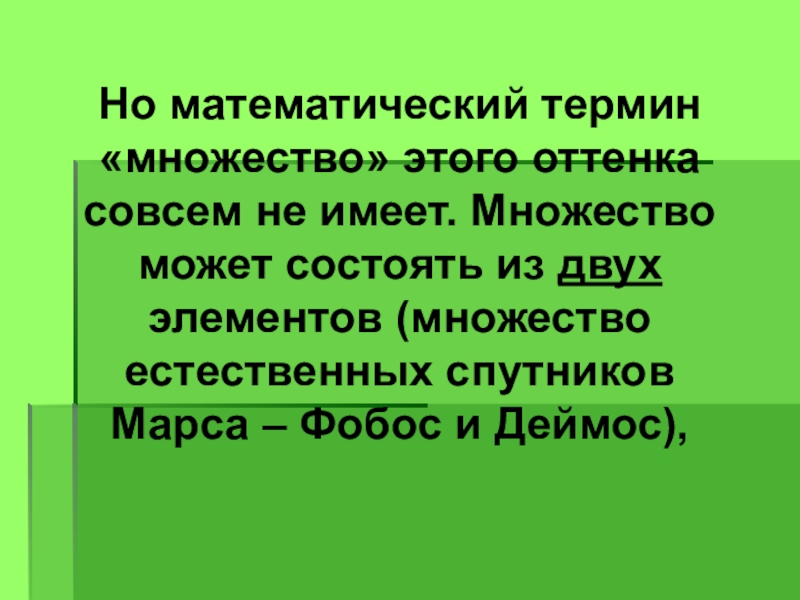 Слайд 11Но математический термин «множество» этого оттенка совсем не имеет. Множество может
