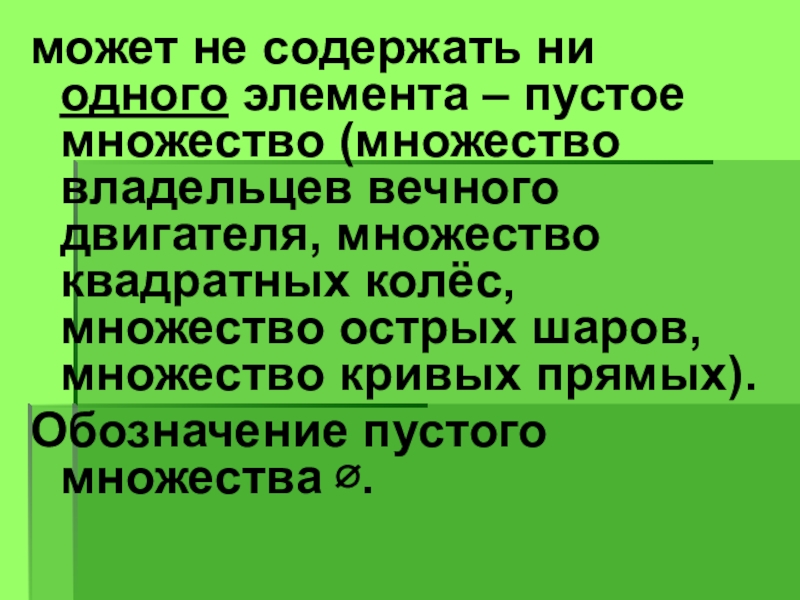 Слайд 13может не содержать ни одного элемента – пустое множество (множество владельцев