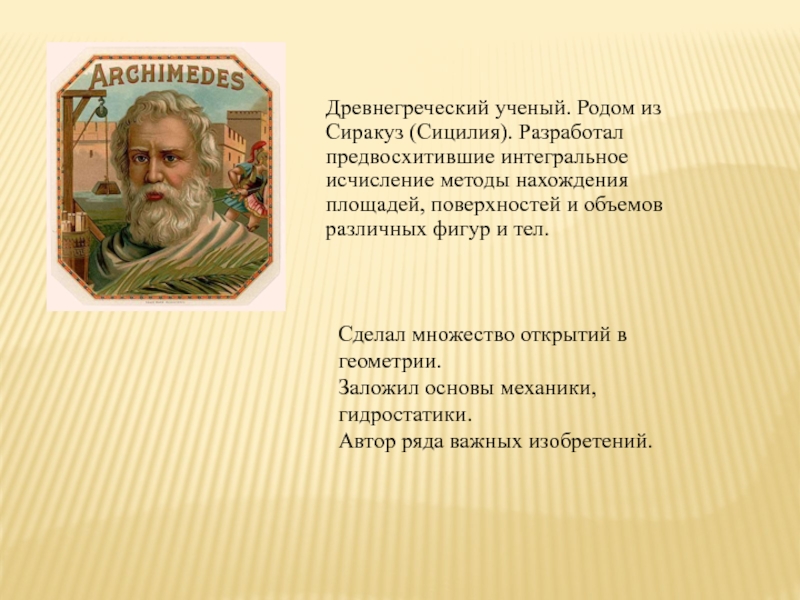 Он положил начало логике и физике. Труды Аристотеля обнаруживают полное владение математическим методом и знание математики, хотя он, подобно своему учителю Платону, и не сделал в ней никаких открытий. Аристотель-философ немыслим без Аристотеля-математика.