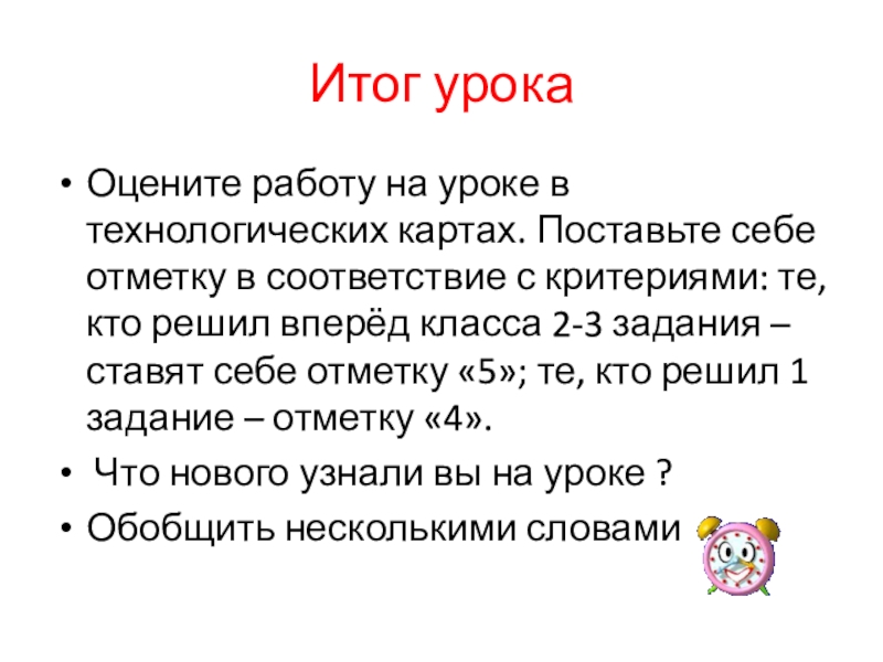 отметку в соответствие с критериями: те, кто решил вперёд класса 2-3 задания – ставят себе отметку «5»; те, кто решил 1 задание – отметку «4».