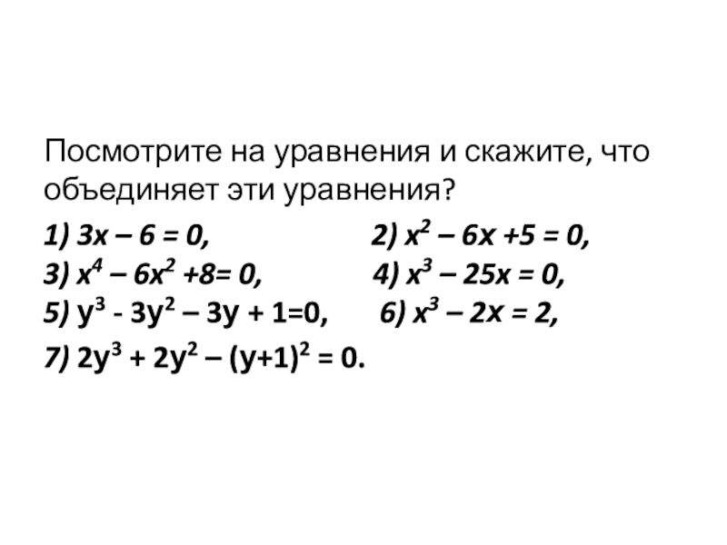 Слайд 3Посмотрите на уравнения и скажите, что объединяет эти уравнения?