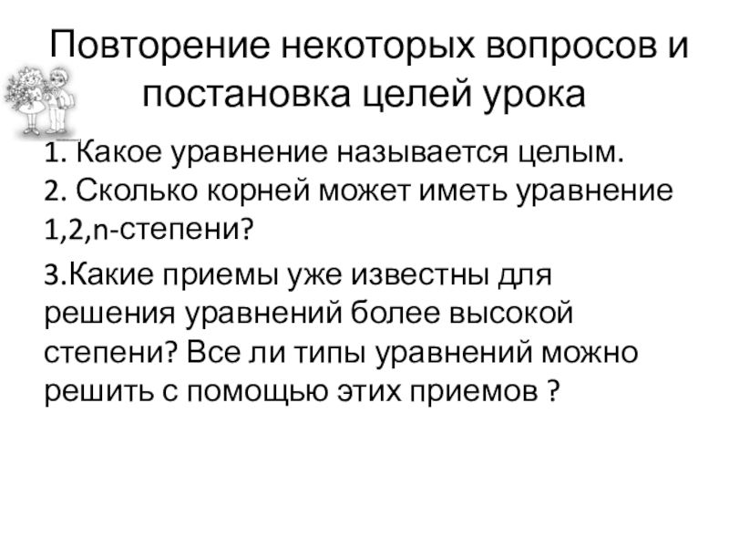 Слайд 4Повторение некоторых вопросов и постановка целей урока