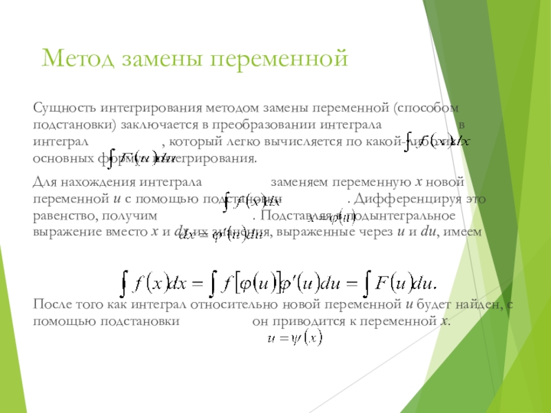 Сущность интегрирования методом замены переменной (способом подстановки) заключается в