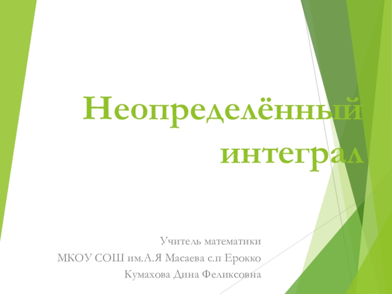 Неопределённый интеграл Учитель математикиМКОУ СОШ им.А.Я Масаева с.п ЕроккоКумахова Дина Феликсовна