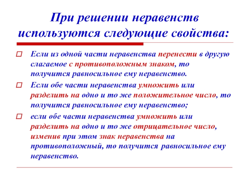 научиться решать неравенства с одной переменной, опираясь на свойства