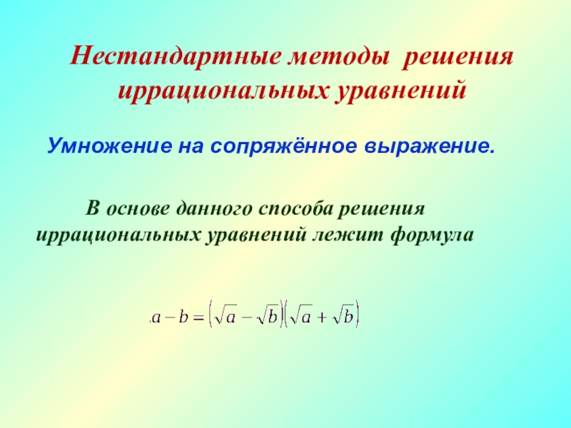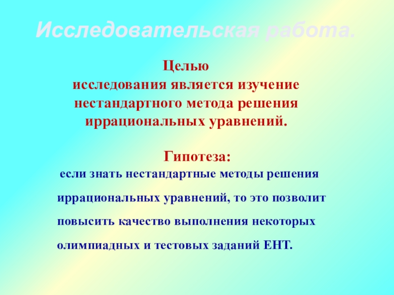 если знать нестандартные методы решения иррациональных уравнений, то это позволит повысить качество выполнения некоторых олимпиадных и тестовых заданий ЕНТ.