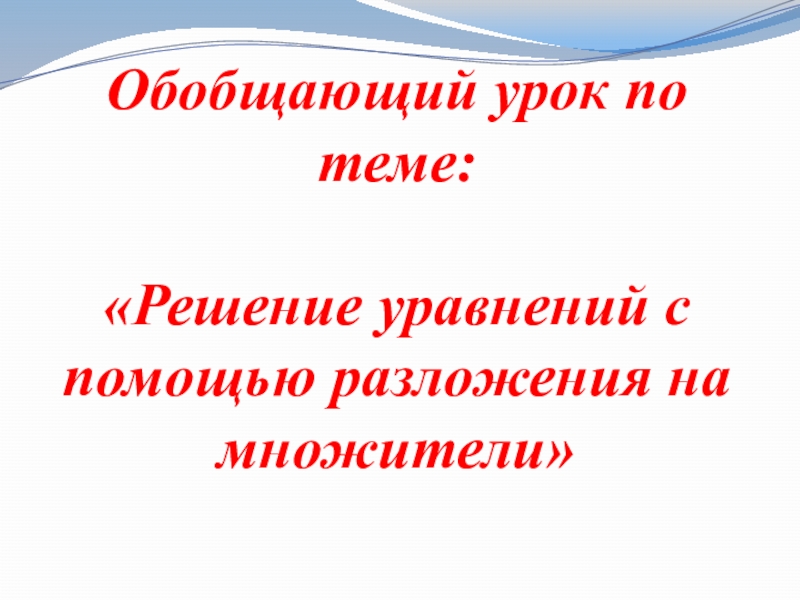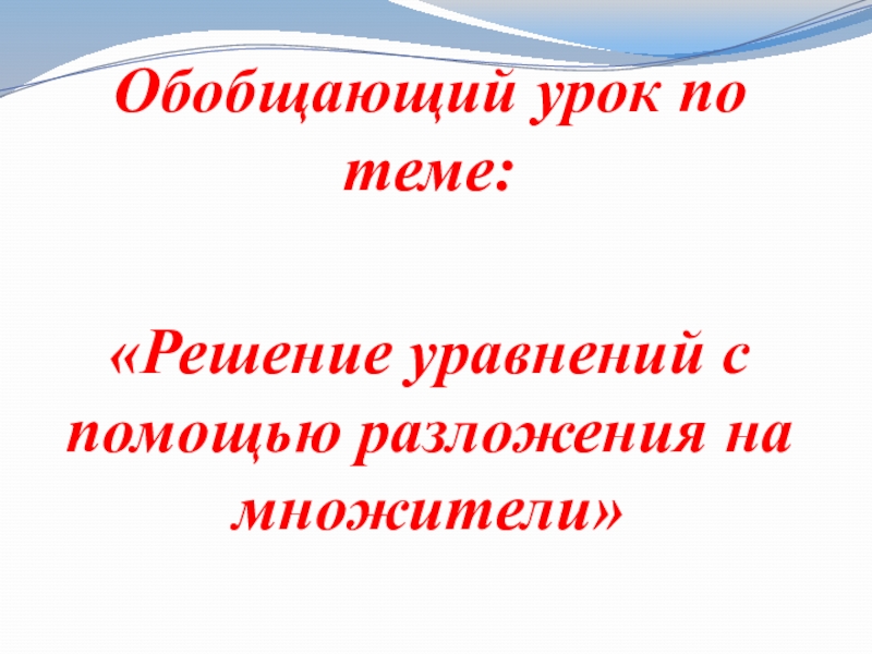 Презентация, доклад на тему Обобщающий урок по алгебре Решение уравнений с помощью разложения на множители