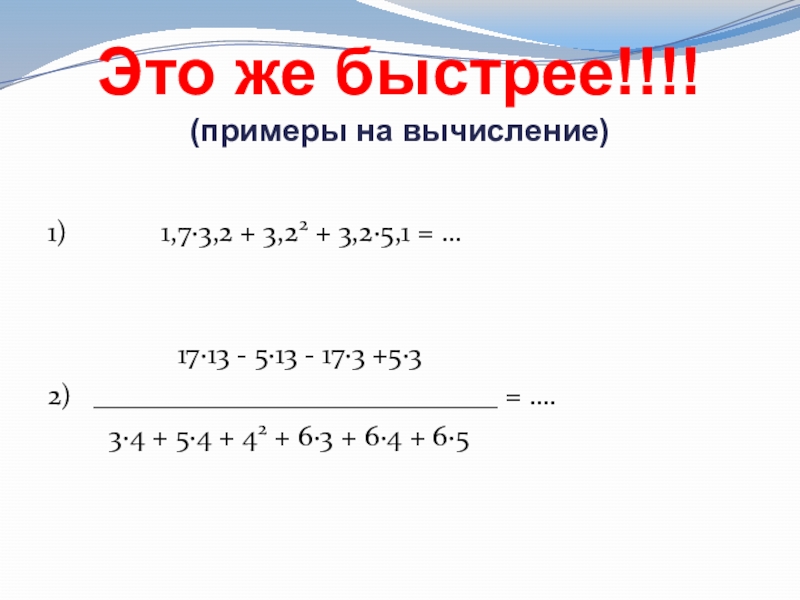 Это же быстрее!!!! (примеры на вычисление)1)       1,7·3,2 + 3,22 + 3,2·5,1