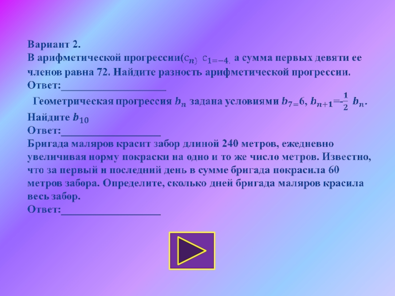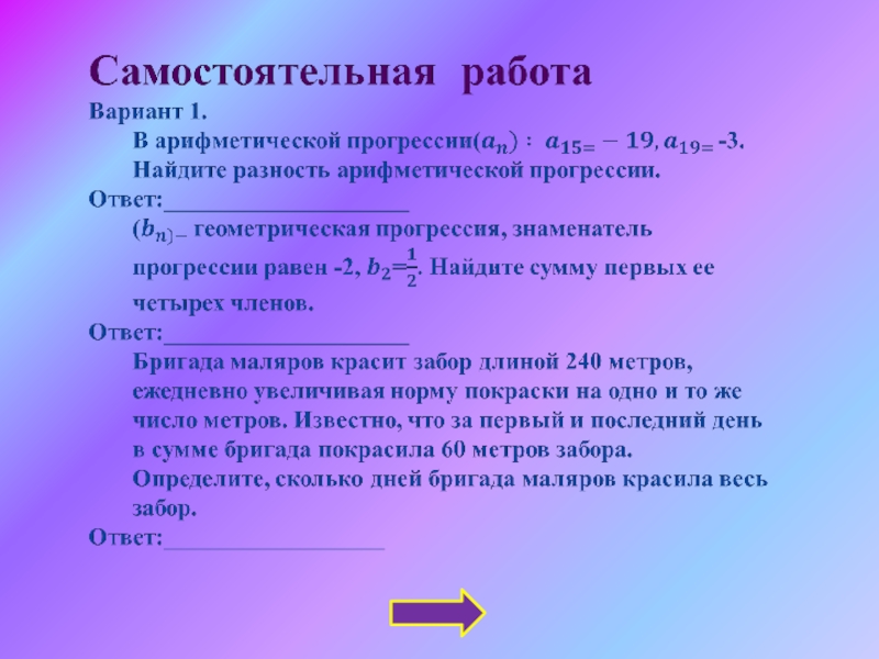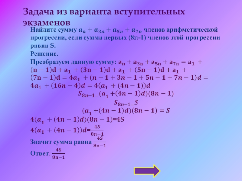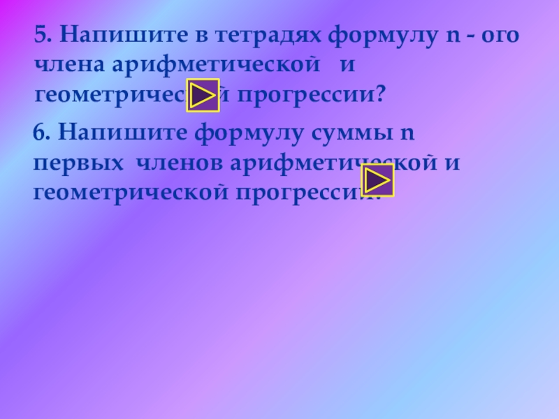 6. Напишите формулу суммы n первых членов арифметической и геометрической прогрессии?