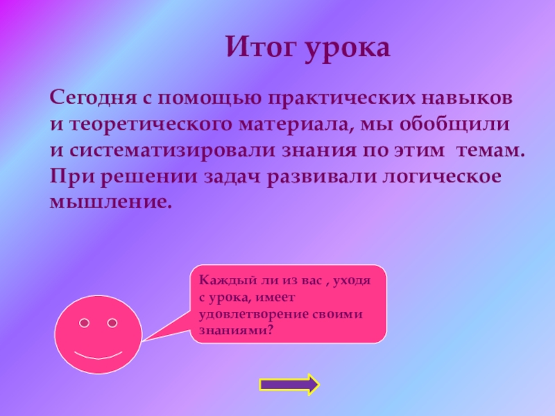 Каждый ли из вас , уходя с урока, имеет удовлетворение своими знаниями?