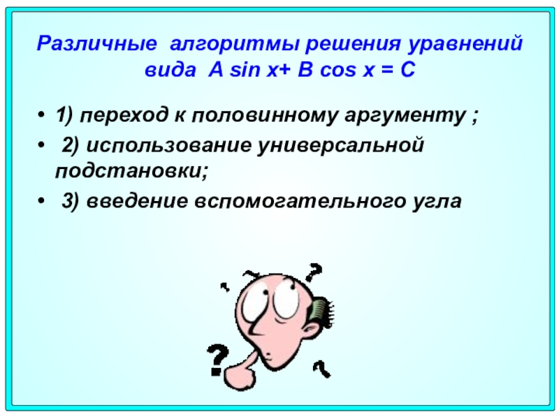 3) введение вспомогательного угла
