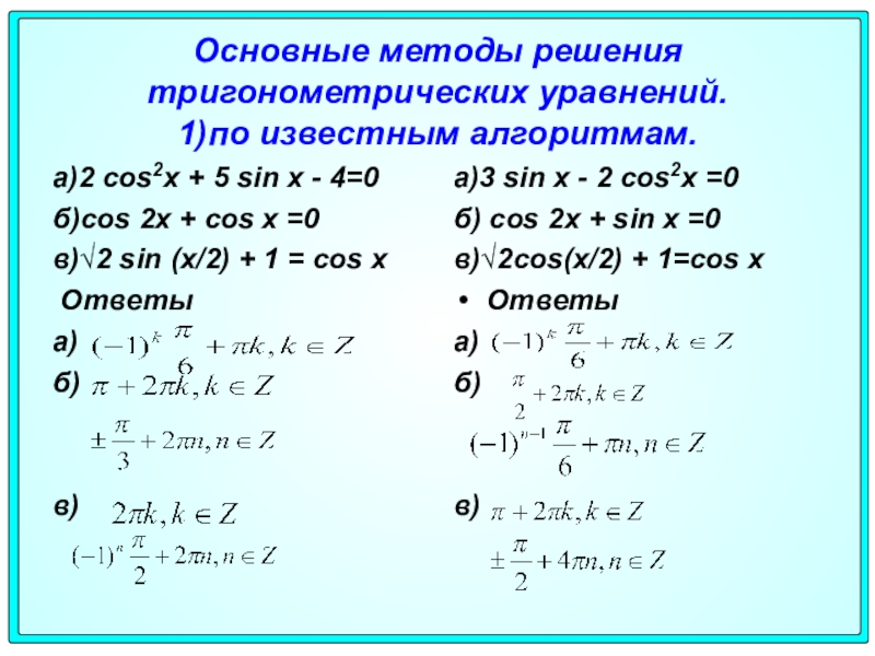 в)√2cos(x/2) + 1=cos x
