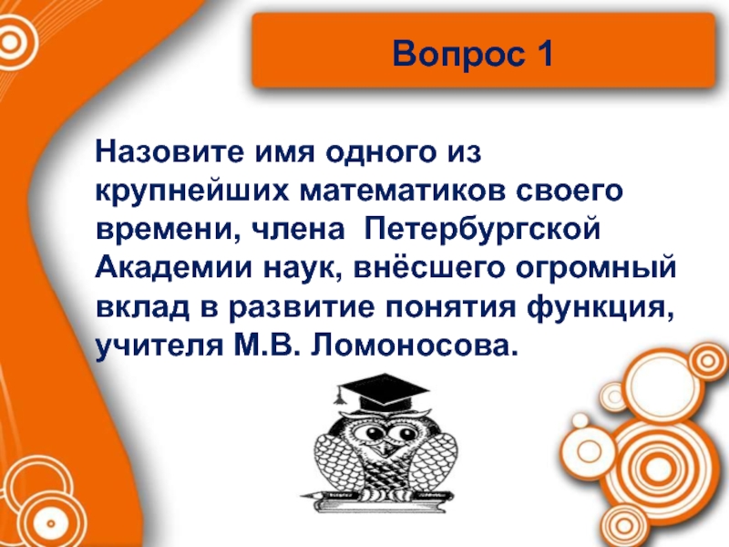члена Петербургской Академии наук, внёсшего огромный вклад в развитие понятия функция, учителя М.В. Ломоносова.