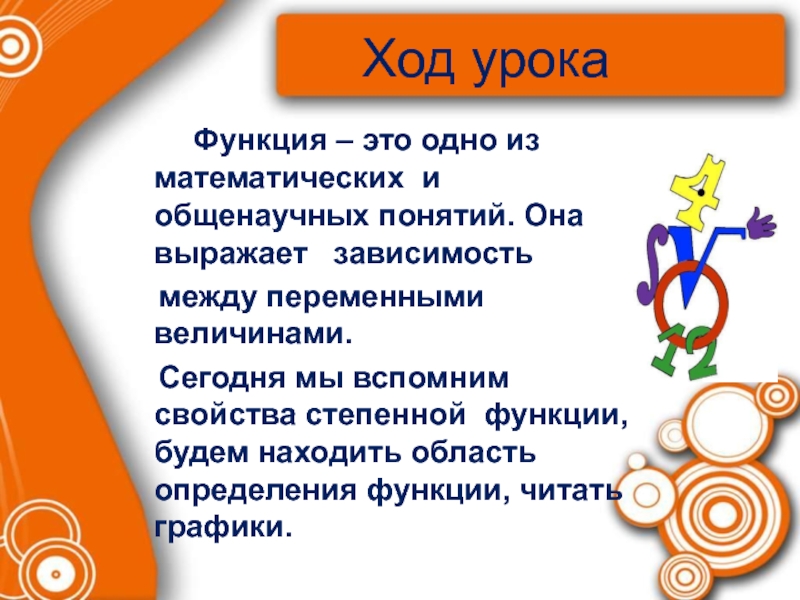 Сегодня мы вспомним свойства степенной функции, будем находить область определения функции, читать графики.