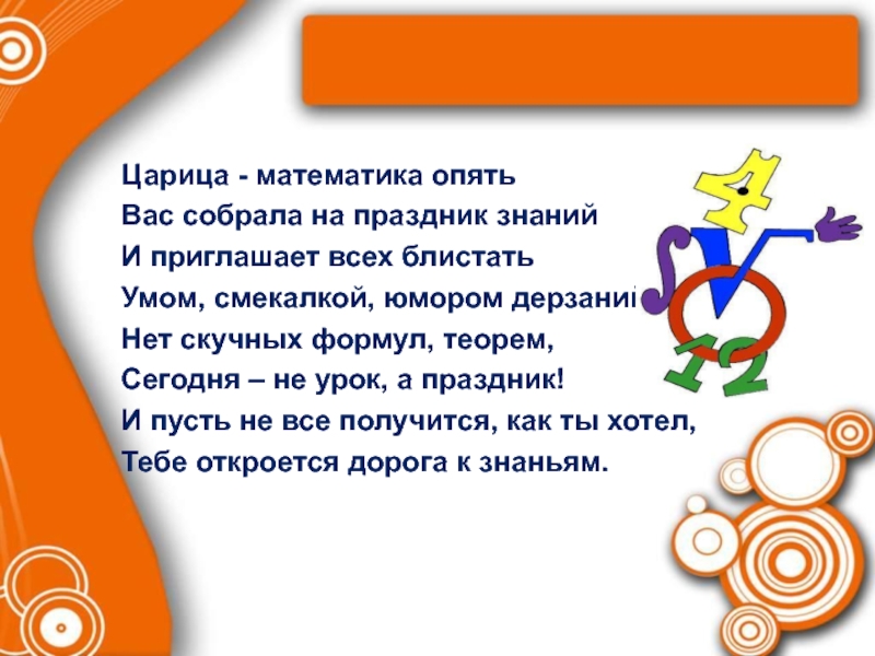 Слайд 2 Царица - математика опять