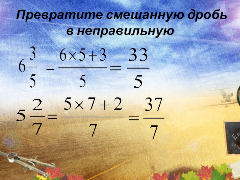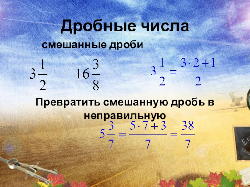 Дробные числасмешанные дробиПревратить смешанную дробь в неправильную