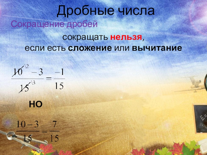 Дробные числаСокращение дробейсокращать нельзя, если есть сложение или вычитаниеНО