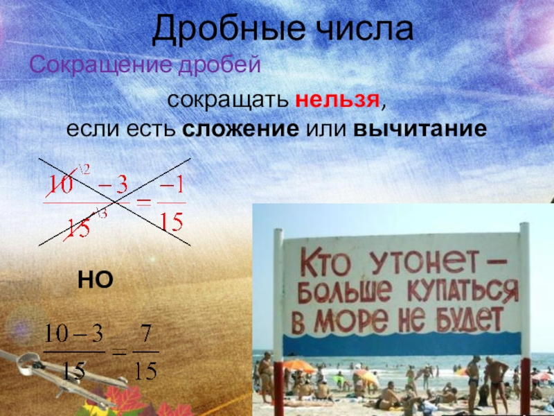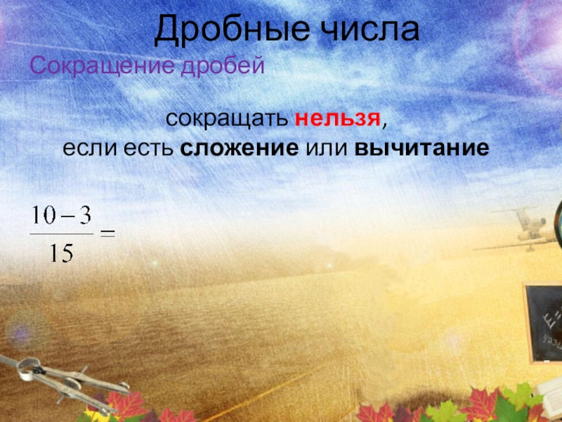 Дробные числаСокращение дробейсокращать нельзя, если есть сложение или вычитание