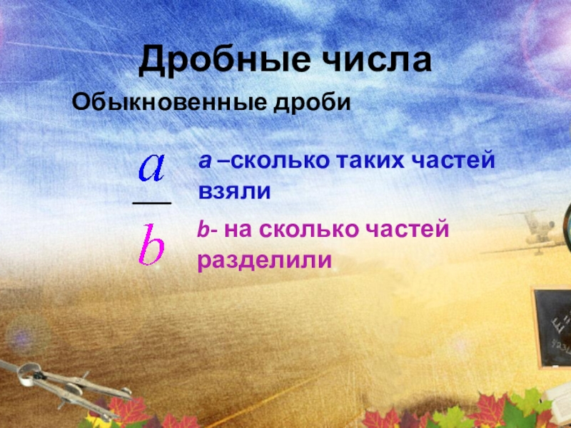 Дробные числаОбыкновенные дробиа –числительb- знаменатель