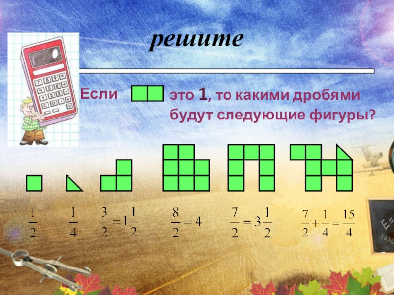 Еслиэто 1, то какими дробями будут следующие фигуры?решите