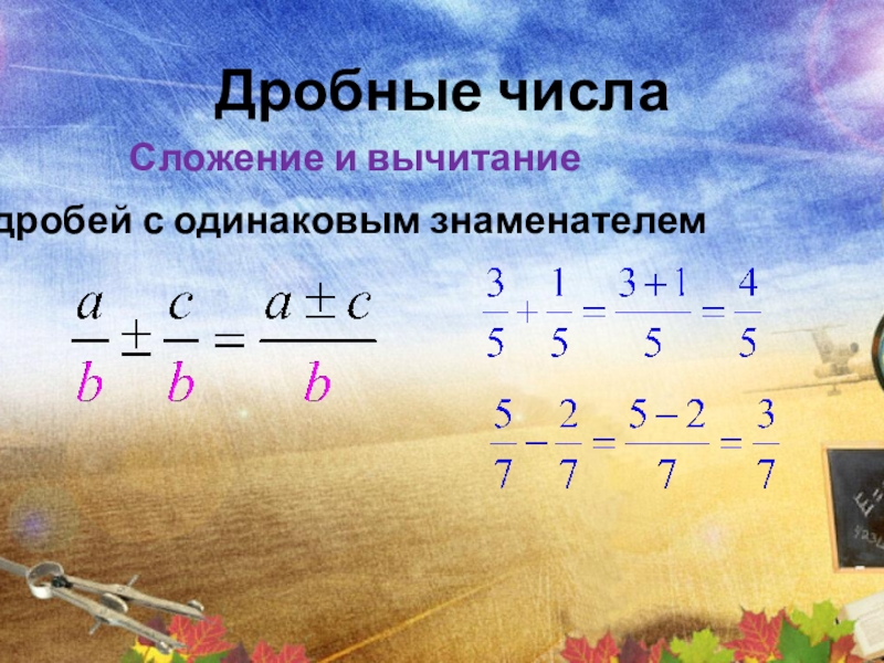 Дробные числаСложение и вычитаниедробей с одинаковым знаменателем