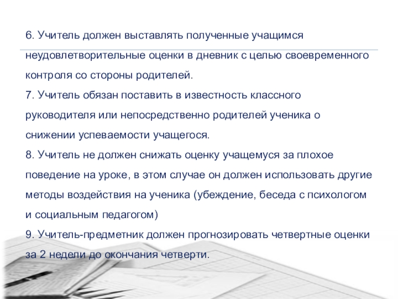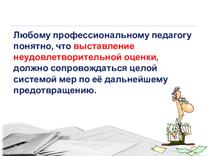 Любому профессиональному педагогу понятно, что выставление неудовлетворительной оценки, должно сопровождаться