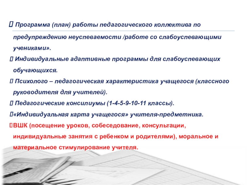Организация работы со слабоуспевающими и неуспевающими учащимися