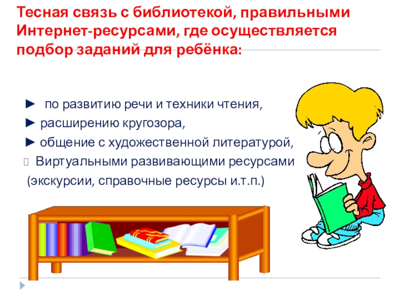 Тесная связь с библиотекой, правильными Интернет-ресурсами, где осуществляется подбор заданий для