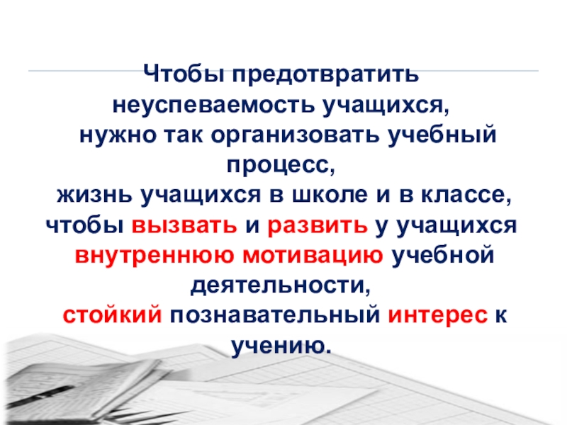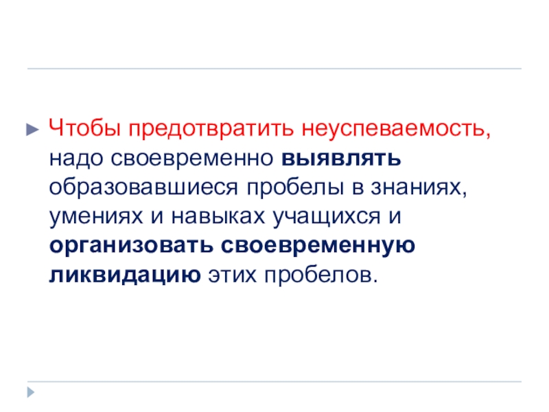 Чтобы предотвратить неуспеваемость, надо своевременно выявлять образовавшиеся пробелы в знаниях, умениях