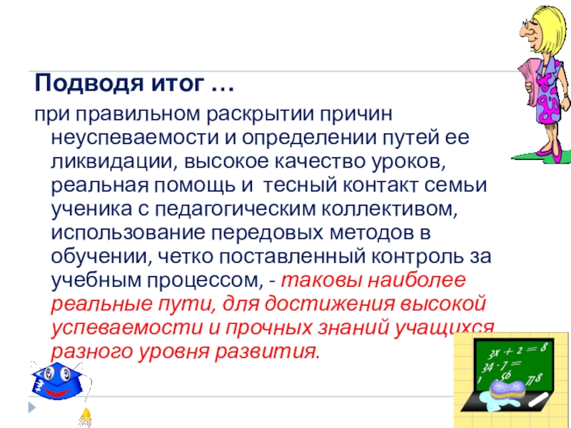 при правильном раскрытии причин неуспеваемости и определении путей ее