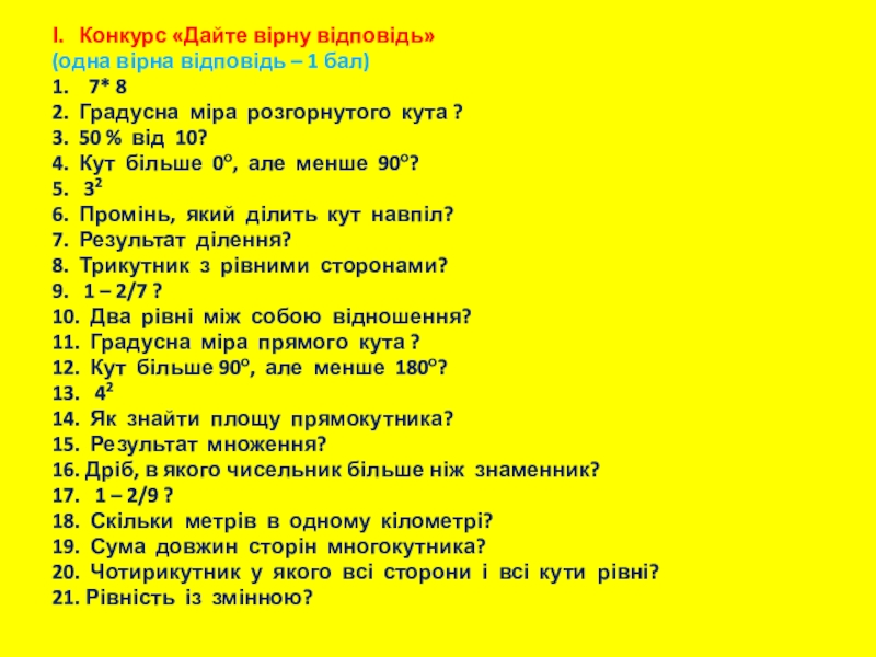 Слайд 3І. Конкурс «Дайте вірну відповідь»