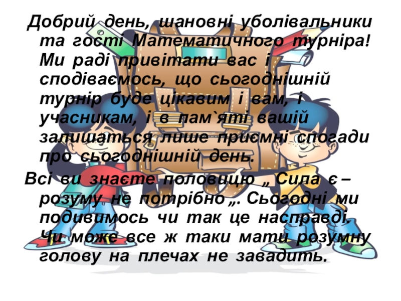 Слайд 2 Добрий день, шановні уболівальники та гості Математичного турніра! Ми раді