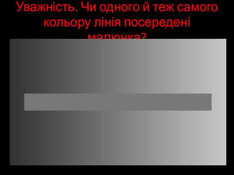 Слайд 13Уважність. Чи одного й теж самого кольору лінія посередені малюнка?