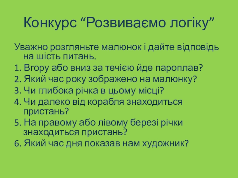 Уважно розгляньте малюнок і дайте відповідь на шість питань.