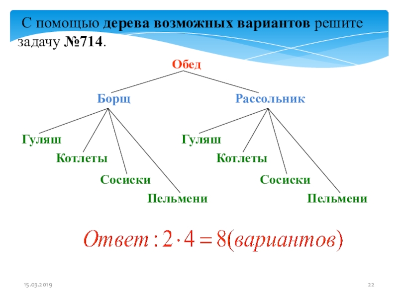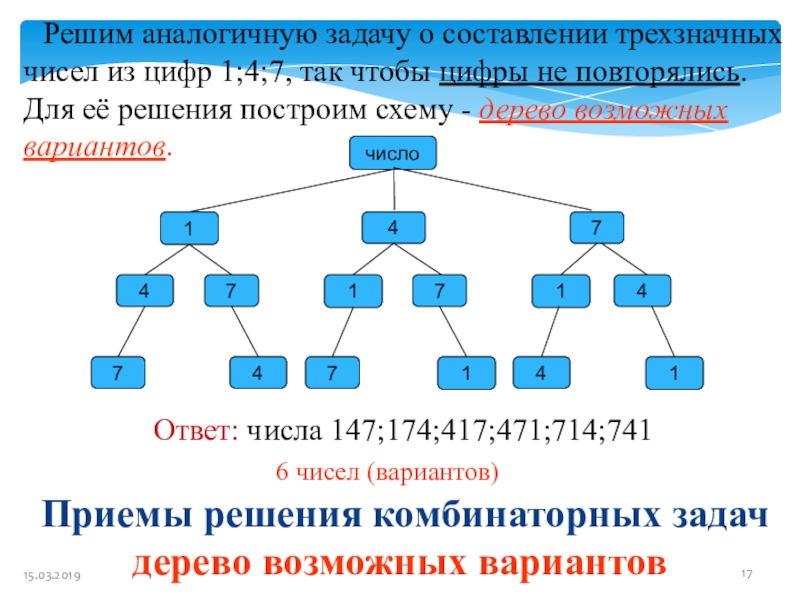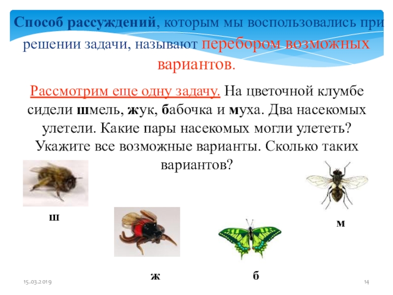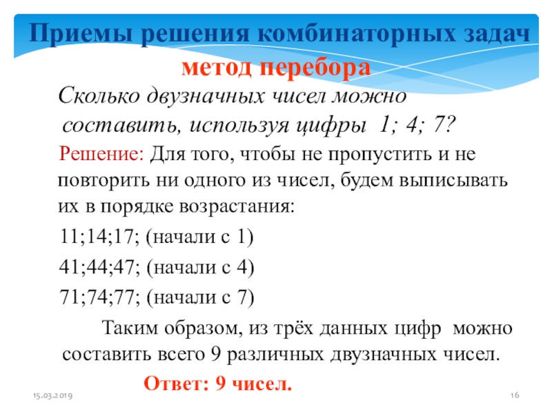 Способ рассуждений, которым мы воспользовались при решении задачи, называют перебором возможных вариантов.