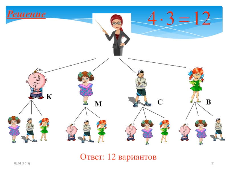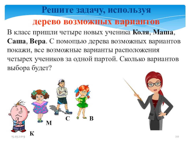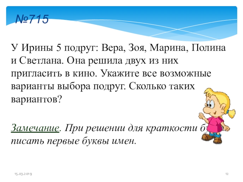 Замечание. При решении для краткости будем писать первые буквы имен.