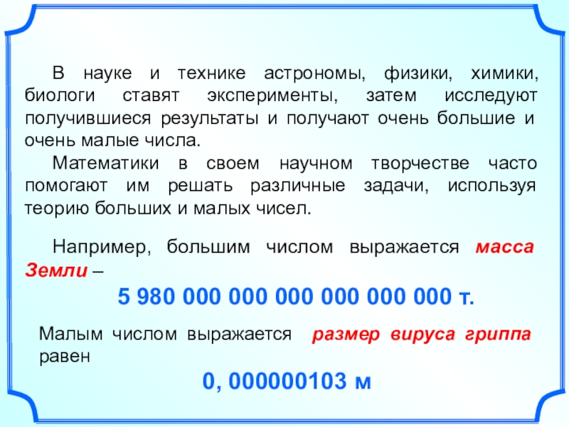 Например, большим числом выражается масса Земли –